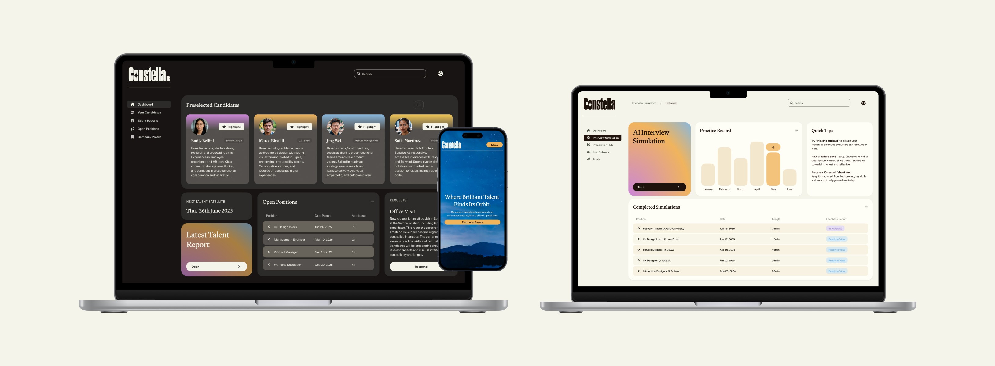 Constella is a recruitment platform designed to uncover hidden talent in underrepresented regions. Through service design, co-design workshops, and UX prototyping, our team reimagined how companies can discover and support “star candidates.” The project combined research with system-level design and resulted in service blueprints and UX prototypes illustrating both candidate and company journeys.