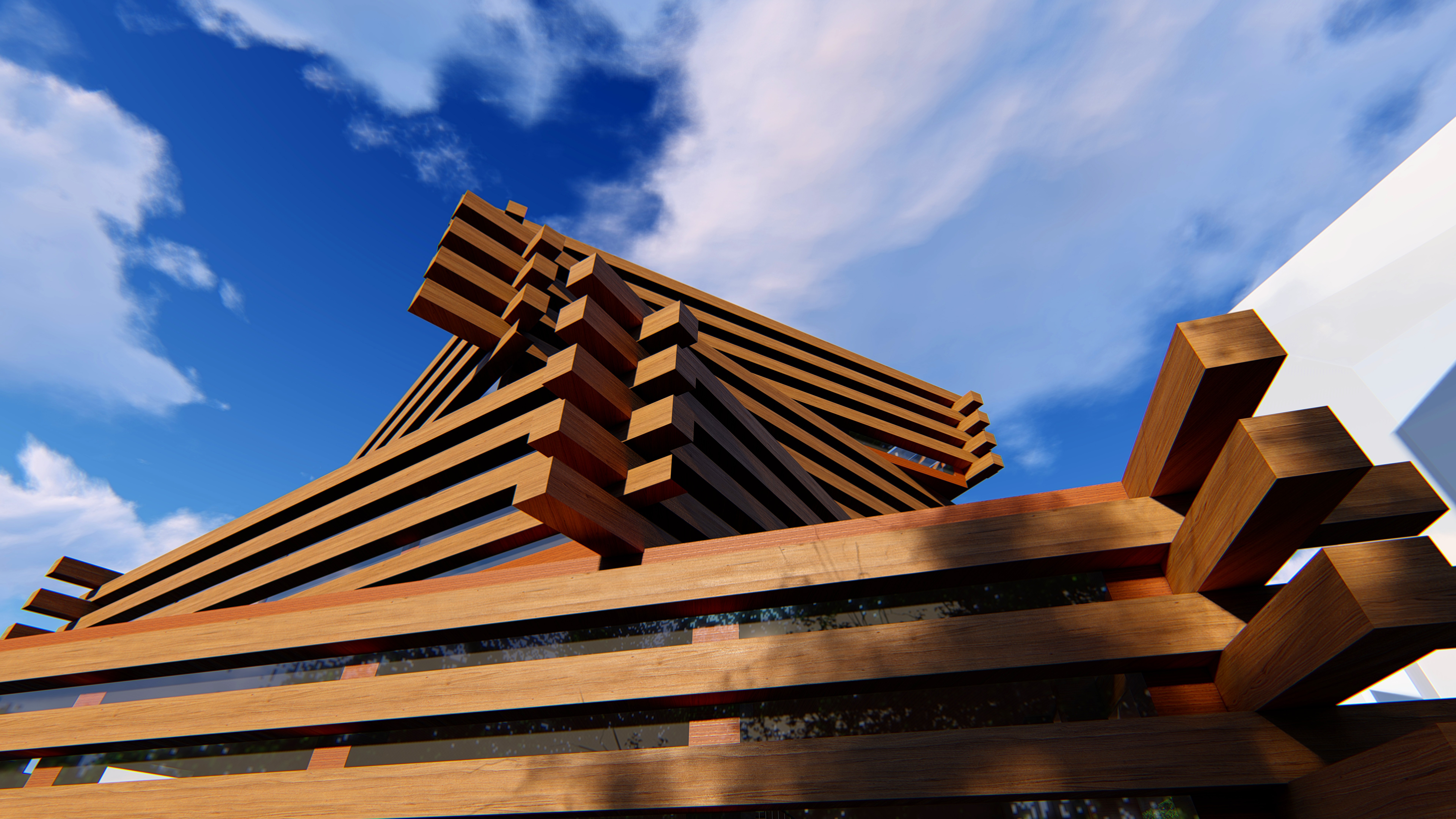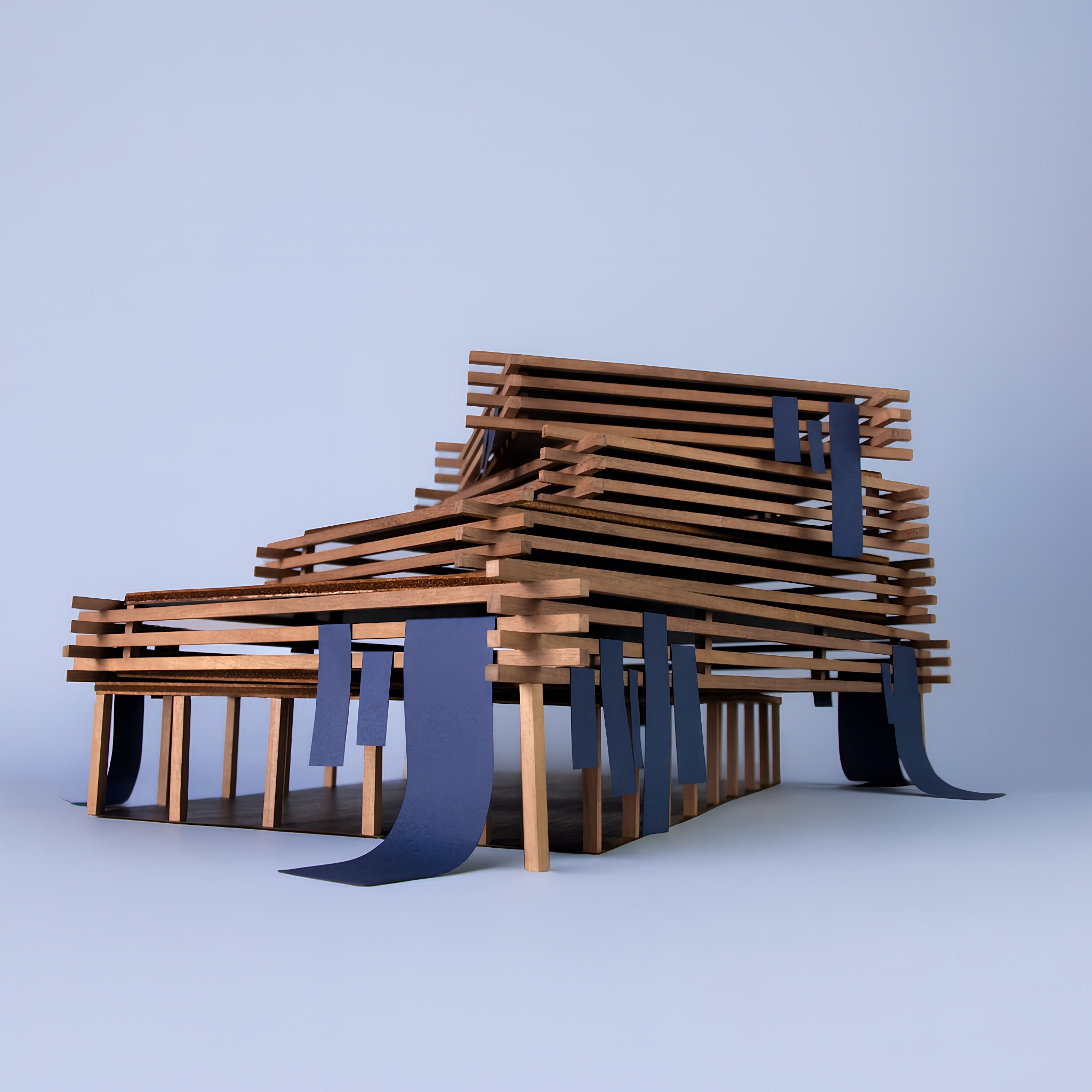 We created a 1:100 scale model of the QIAO cultural hub using layered wood to express the material identity of the project and explore how the service could take physical form.