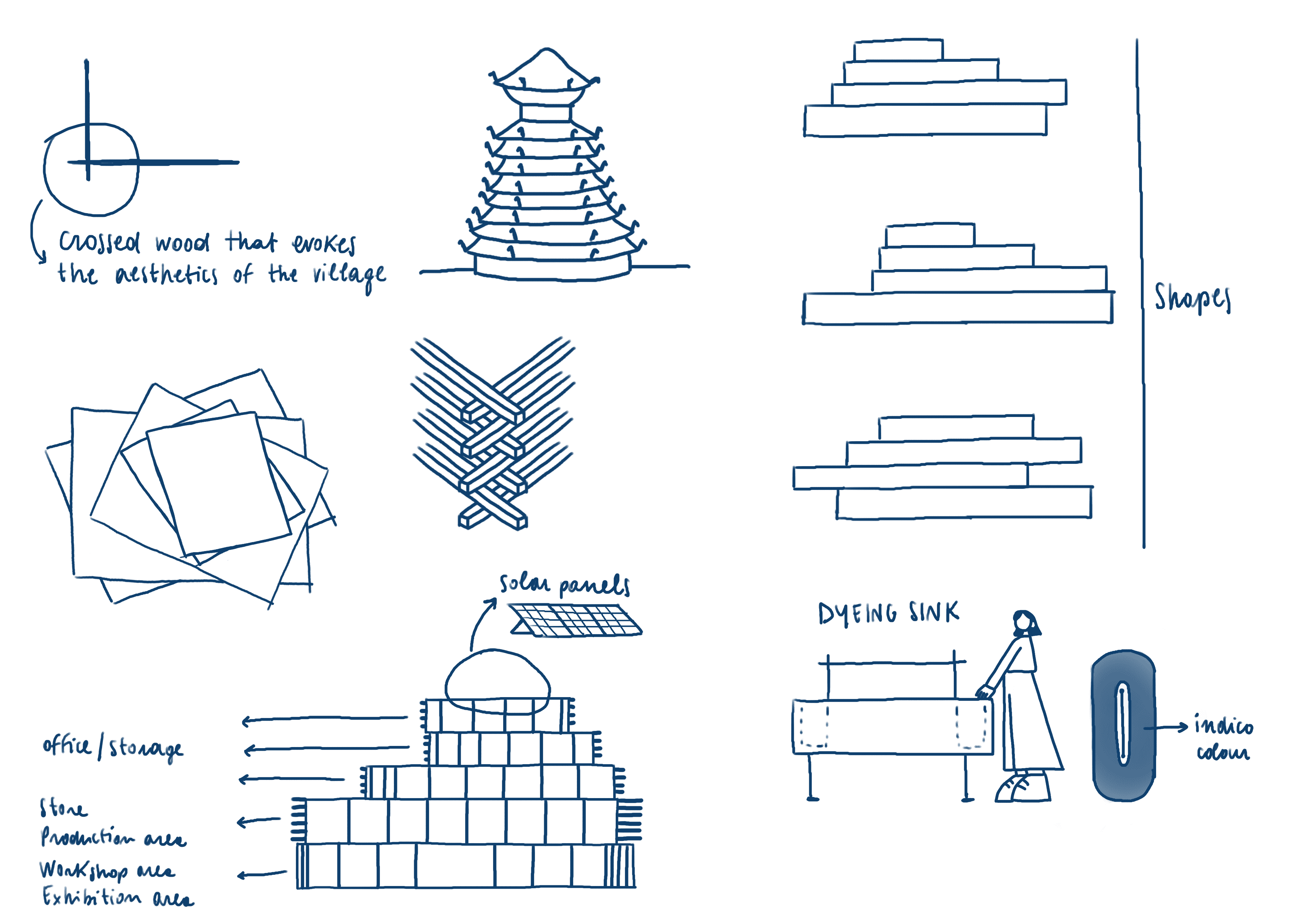 Explored ideas from urban indigo plantations to new product lines before defining QIAO as a cultural hub that buys indigo from artisans and reintroduces the craft to city life through workshops and exhibitions.