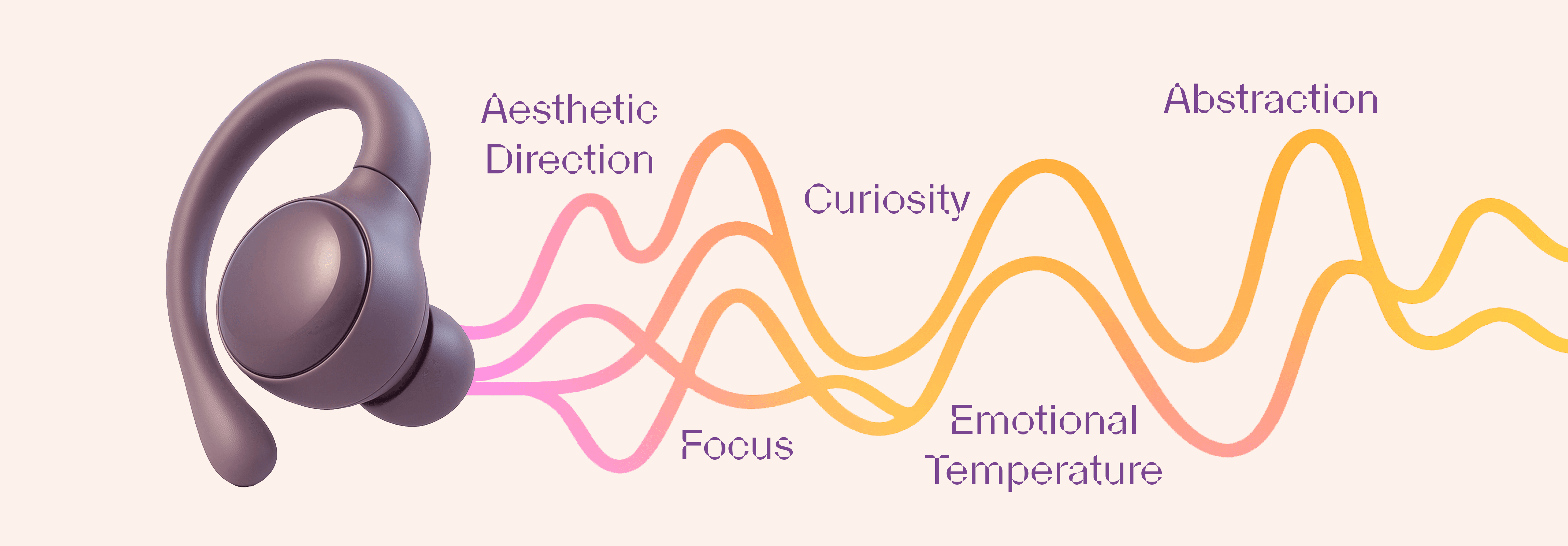 The exhibition presented four speculative futures through stories and visuals. Following the project, I developed a conceptual 3D prototype of the “AI Muse” headset to explore how tangible and haptic qualities could support artists’ creative control when working with AI tools.
